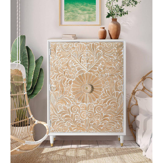 En promo-50%Fournisseur :Armoires doublesArmoire sculptée 2 portes | Manguier Sculture II
