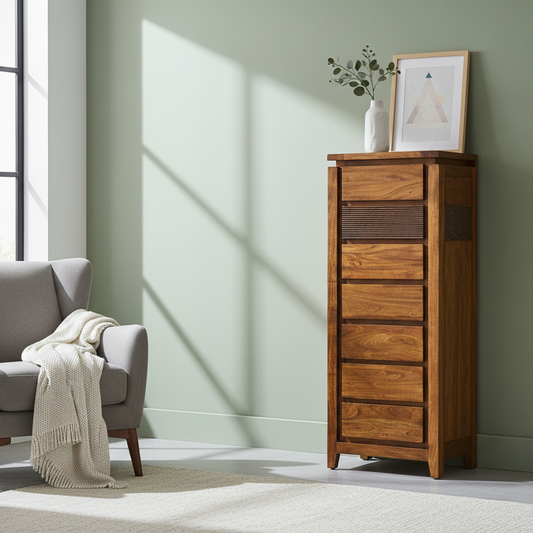 Chevet strié bois - Charnière gauche | Acacia Ramani