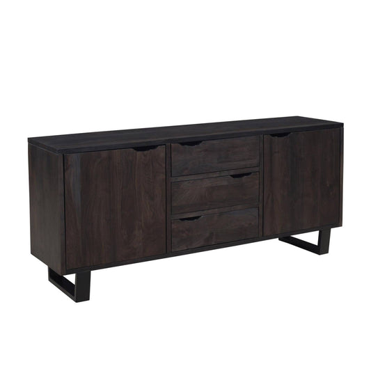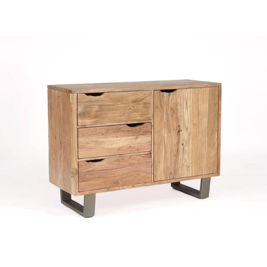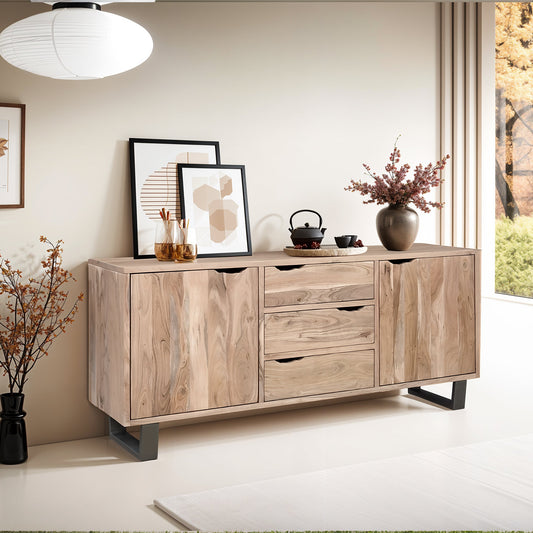 Buffet 2 portes 3 tiroirs en acacia massif et métal | Acacia Black Forest