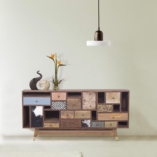 Buffet tiroirs peau de vache bois sculpté | Manguier Terranova
