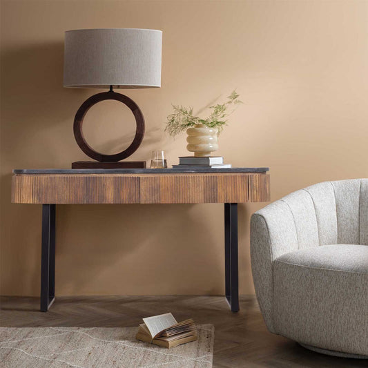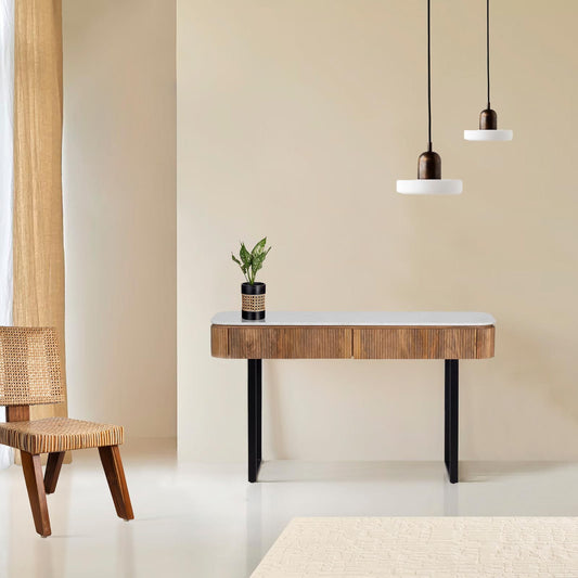 Console 2 tiroirs plateau marbre blanc | Manguier Kfir II
