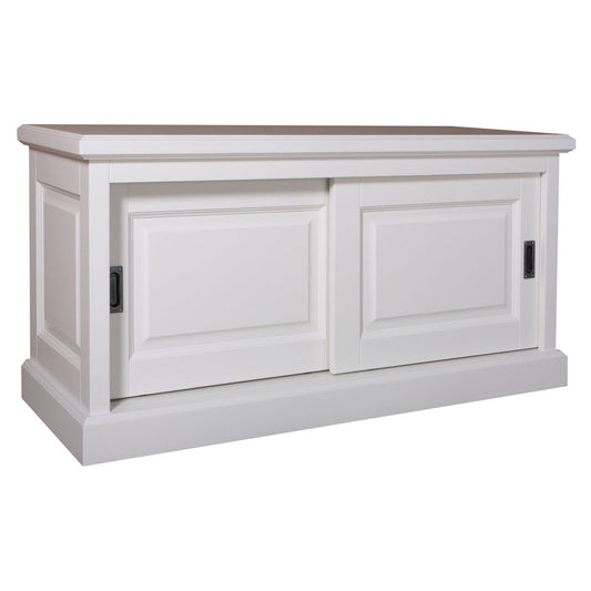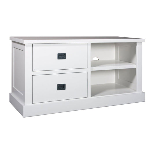 Meuble TV avec étagère 2 portes 2 tiroirs avec des panneaux de bossage "Romance"
