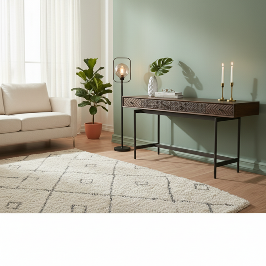 Ya sea que desee rellenar un pasillo angosto o completar su espacio habitable, una consola de madera y tela agrega carácter y uso práctico a su hogar.
