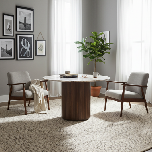 Mesa de comedor redonda con tablero de mármol | Kfir II Mango
