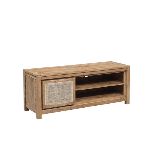 Pequeño mueble de TV de madera natural con puerta de caña | Acacia Tatoo II