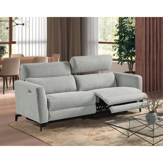 Sofá de 3 plazas, 2 sillones reclinables eléctricos Bombay Gris Claro