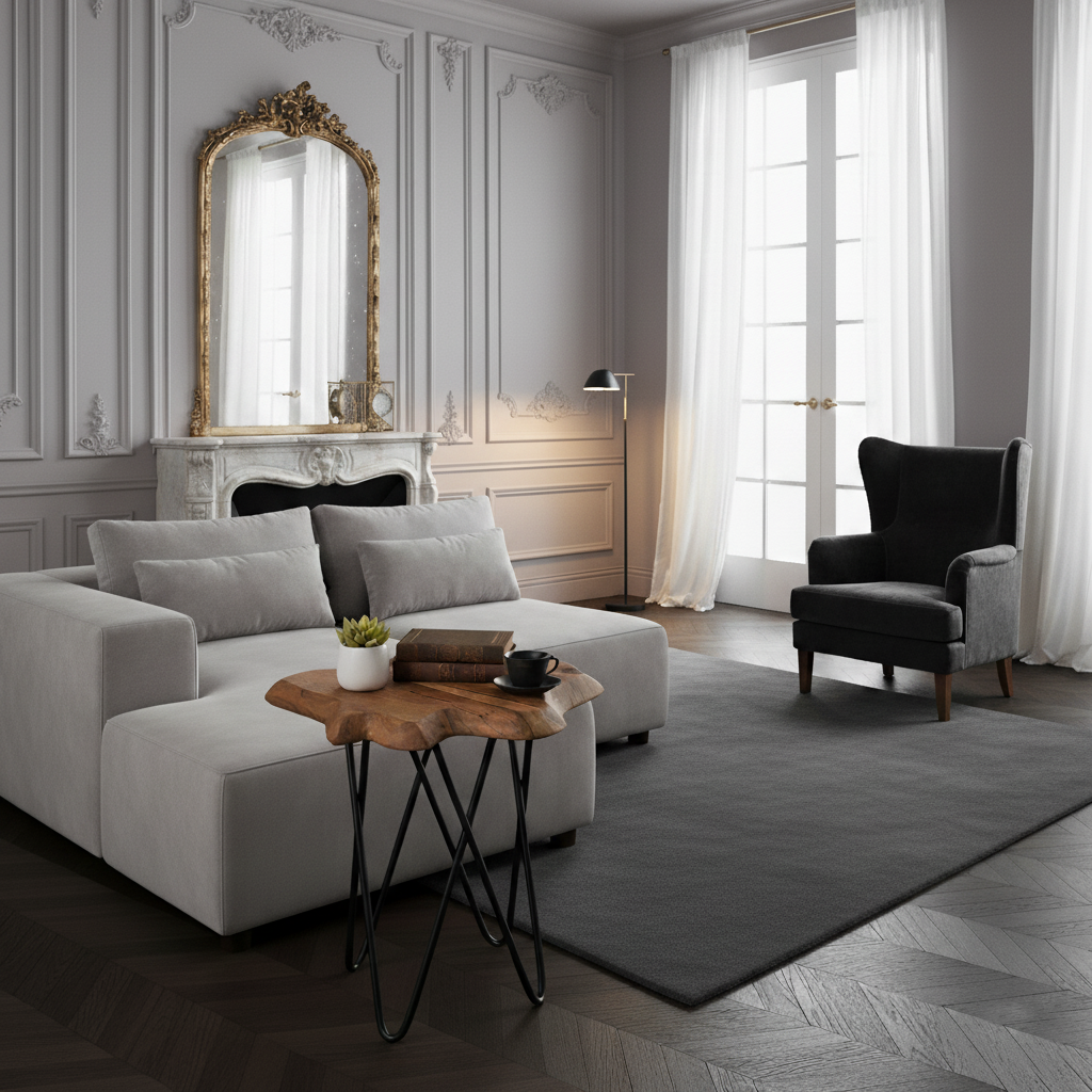 Mesa auxiliar con tablero de madera sin tratar | Raíz de acacia