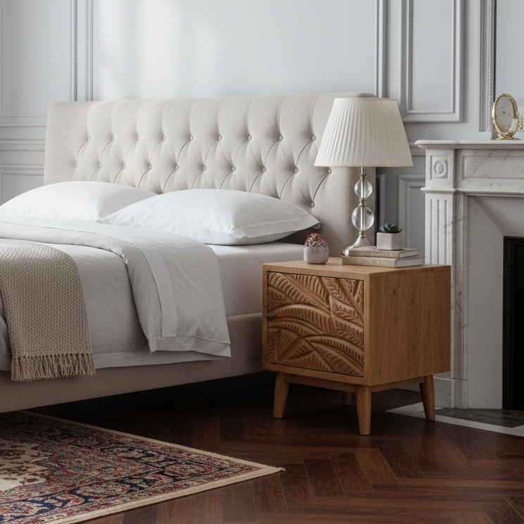 Mesita de noche izquierda tallada | Madera de mango Floria