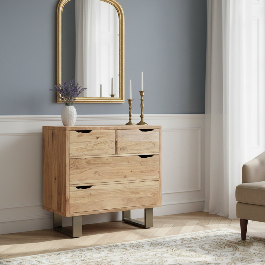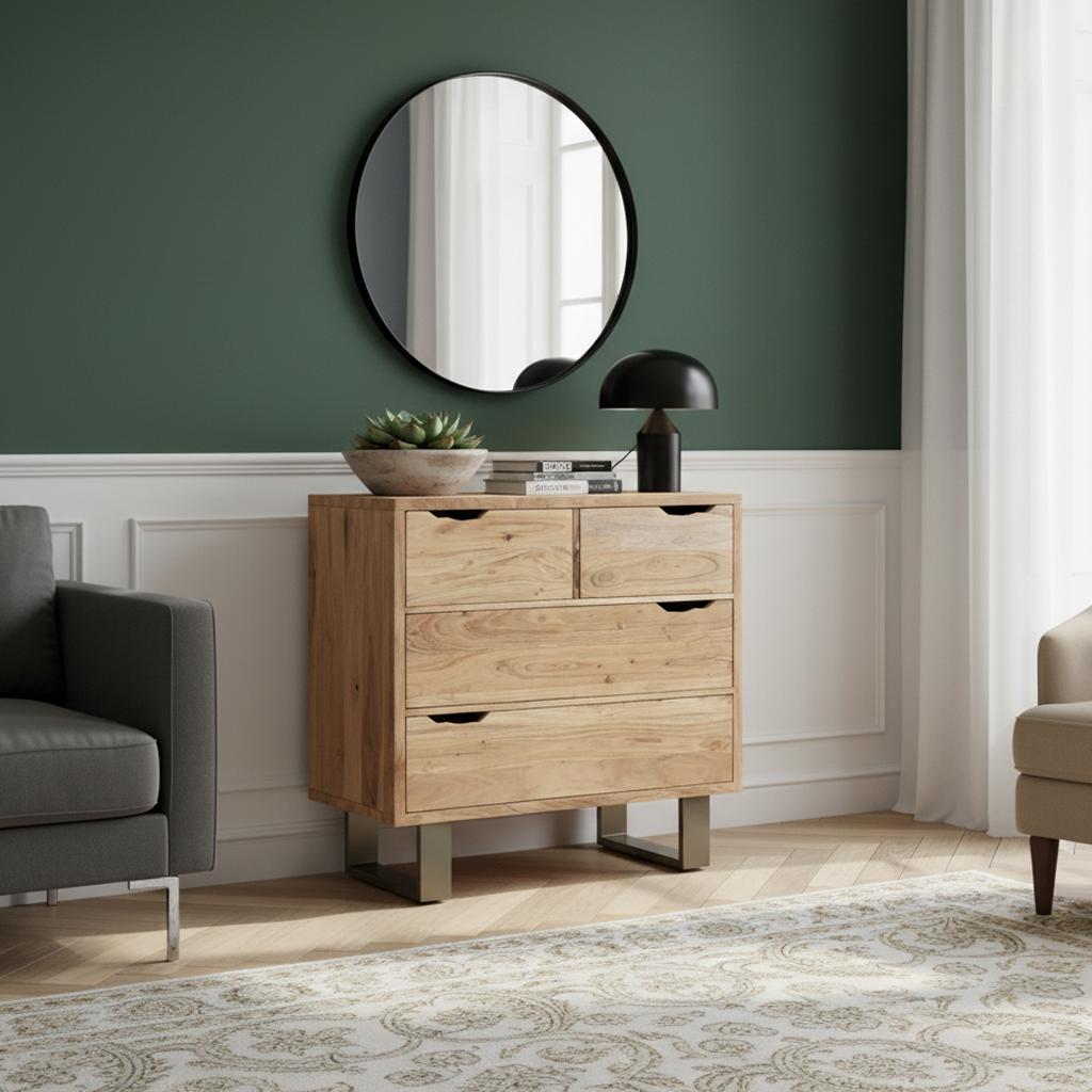 Cómoda de 4 cajones de acacia maciza | Acacia Forest