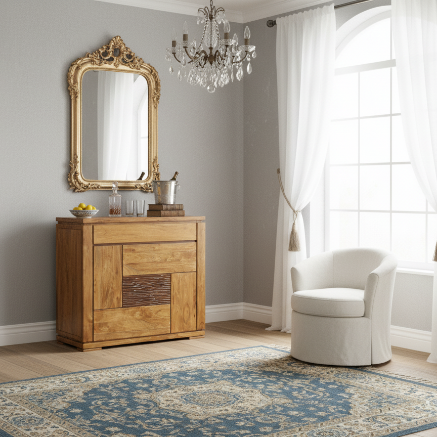 Barra de bar de madera tallada en dos tonos | Acacia Maya