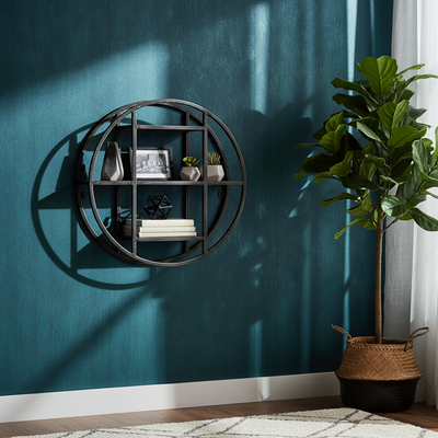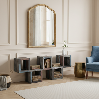 Etagère multi-matériaux peau de vache bois sculpté | Manguier Terranova