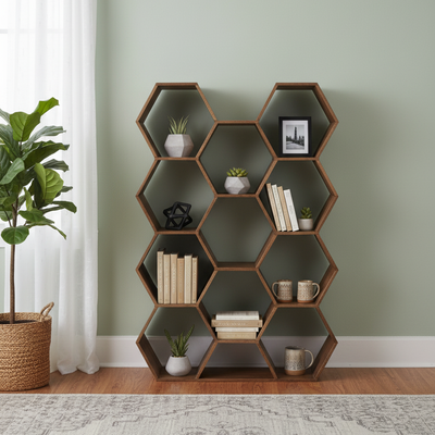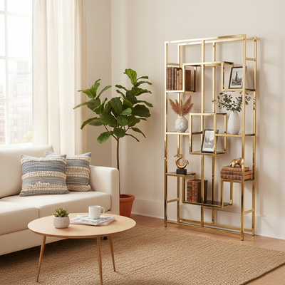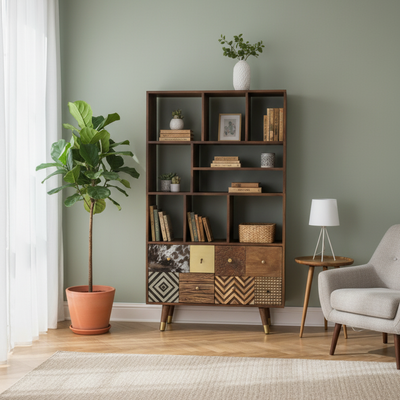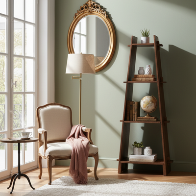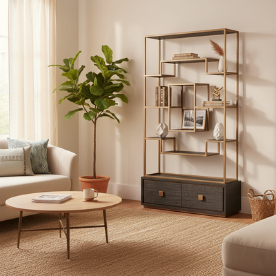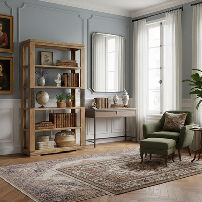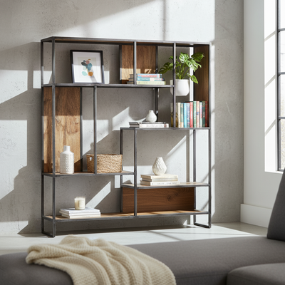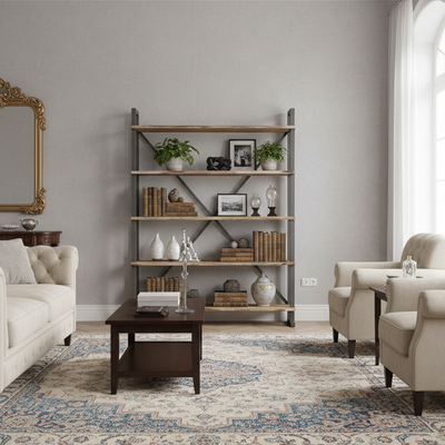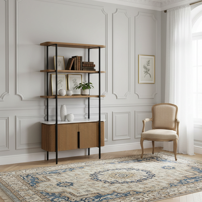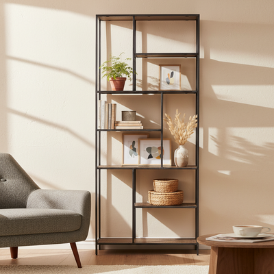 Étagère ouverte 5 niveaux en acacia massif et plaquage