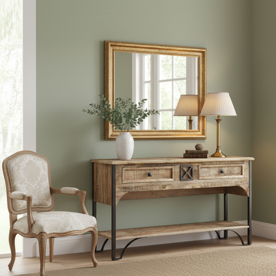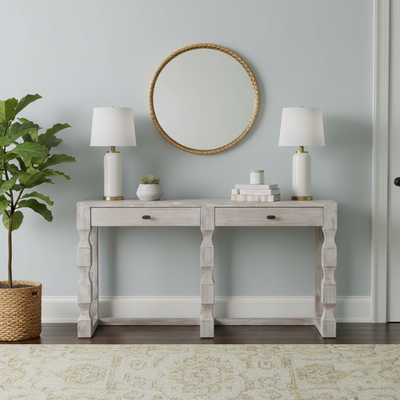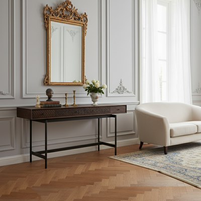 Console 2 tiroirs plateau marbre | Manguier Kfir III