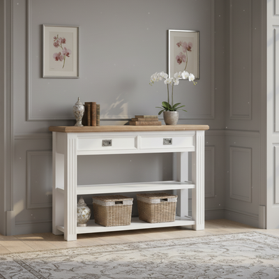 Console 2 tiroirs plateau marbre blanc | Manguier Kfir II