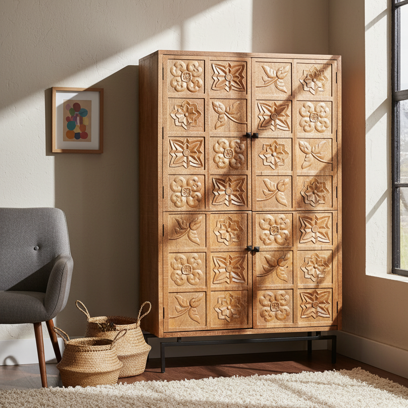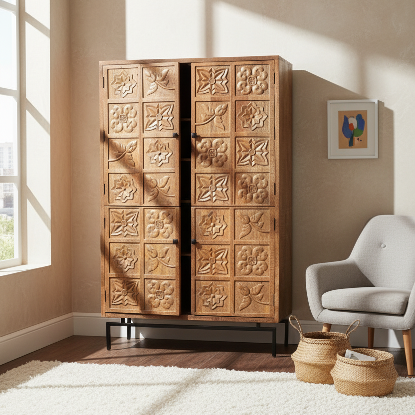 Armoire sculptée 2 portes | Manguier Sculture II