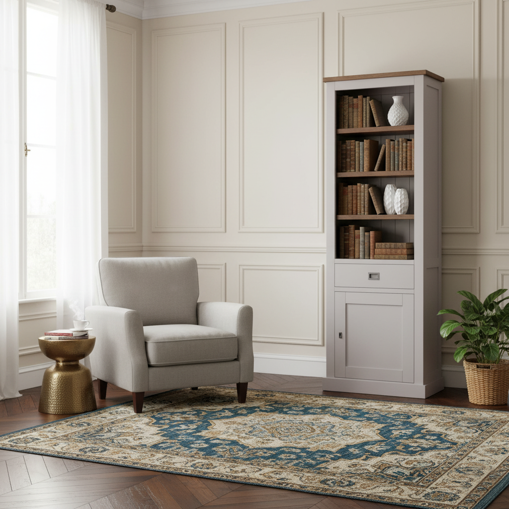 Bibliothèque 1 porte 1 tiroir - tourne à droite "Chêne et Pin Chic"