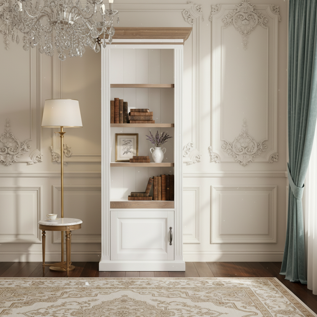Bibliothèque avec porte - avec des panneaux de bossage "Chêne et Pin Romance"