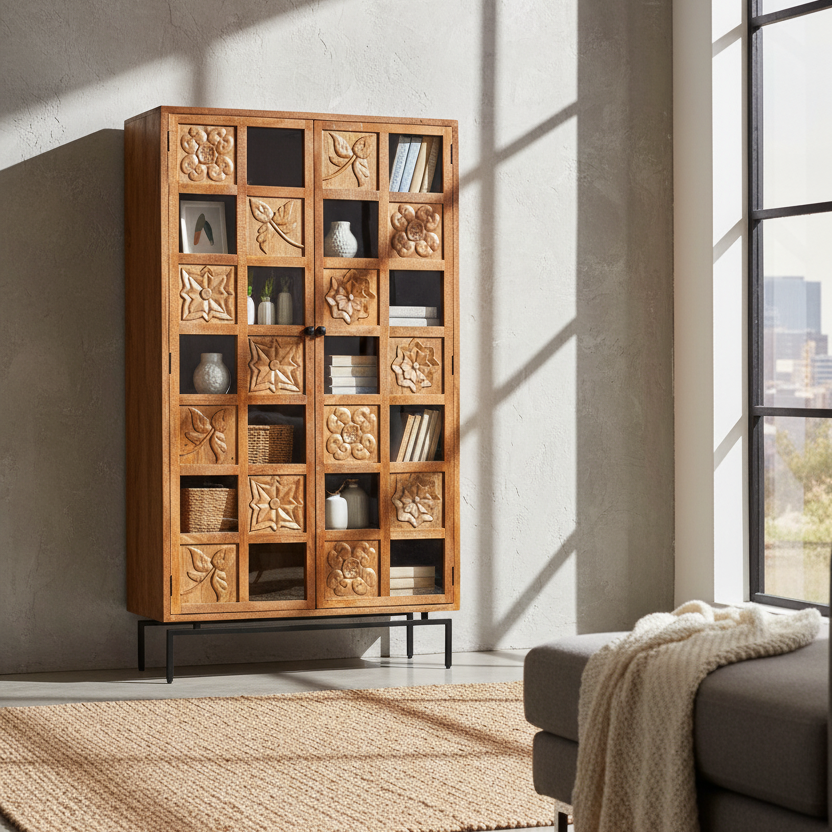 Bibliothèque sculptée 2 portes | Manguier Sculture II
