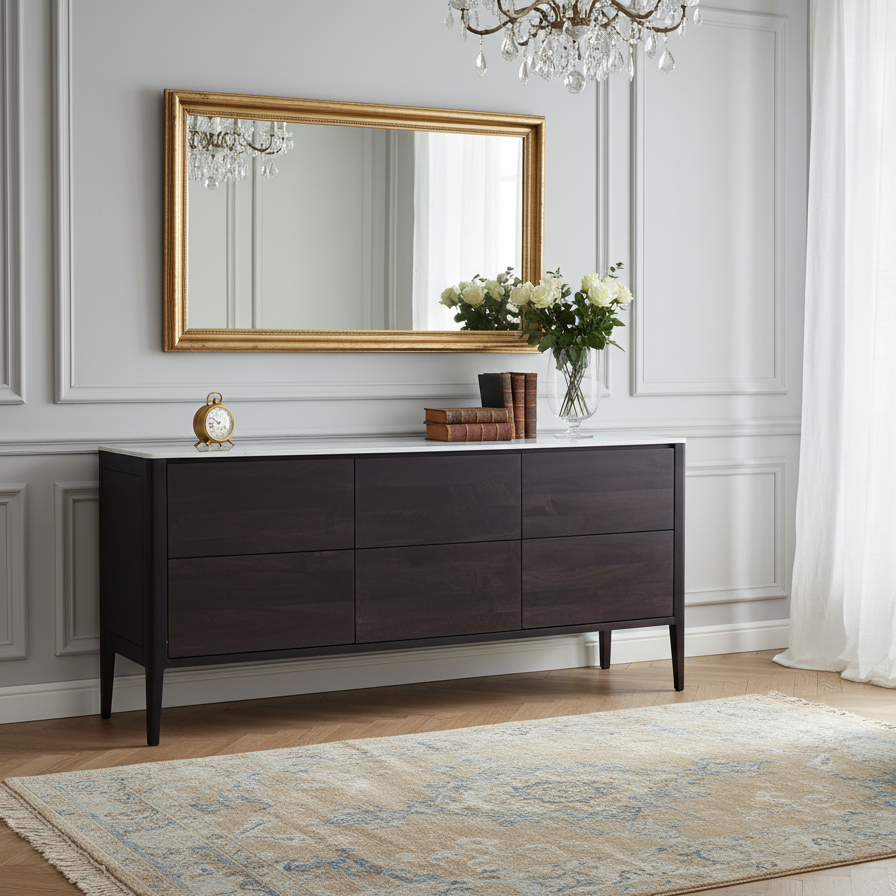 Buffet bois plateau marbre blanc 3T | Manguier Amsterdam