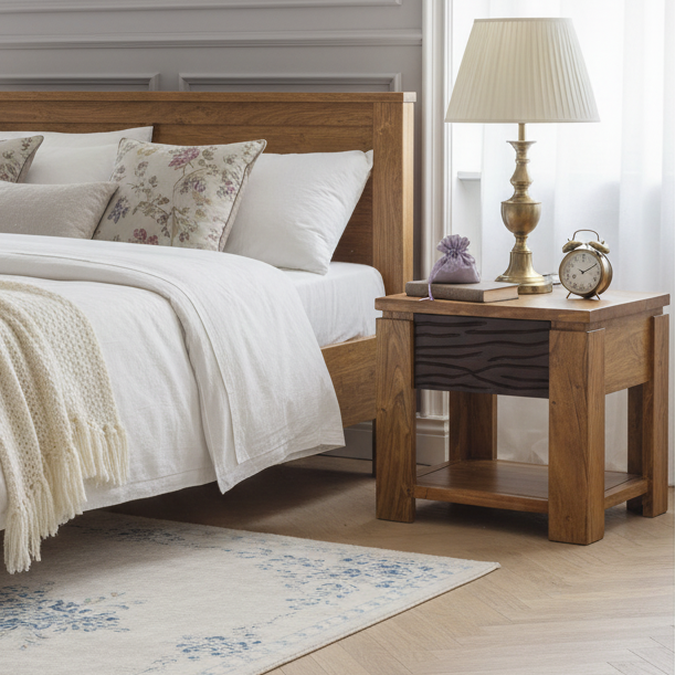 Chevet bois sculpté bicolore 1T | Acacia Maya