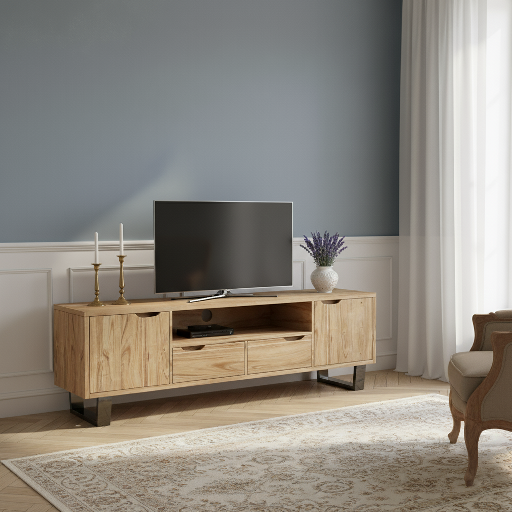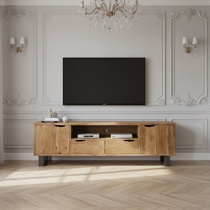 Meuble TV 2 portes 2 tiroirs en acacia massif | Acacia Forest