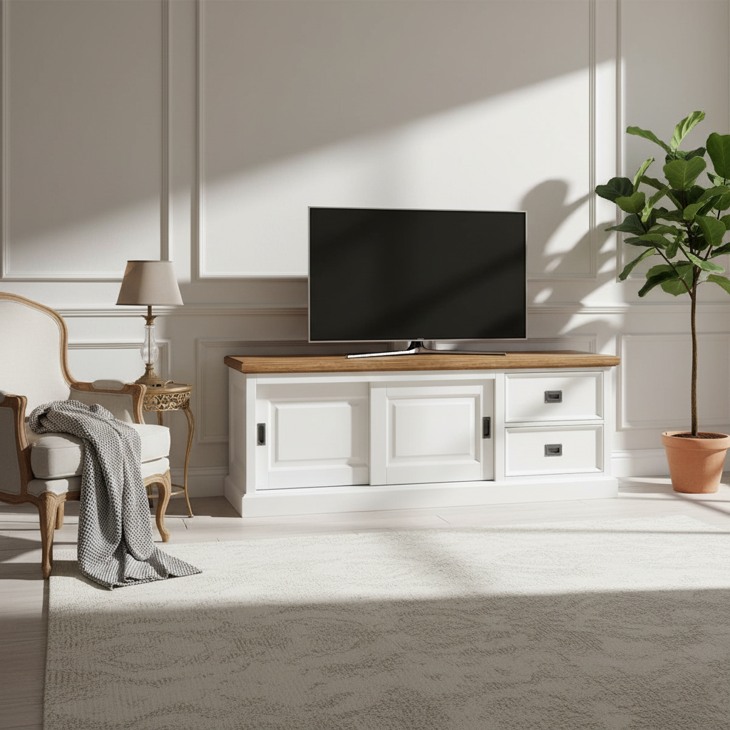 Meuble TV 2 portes 2 tiroirs "Chêne et Pin Charme"