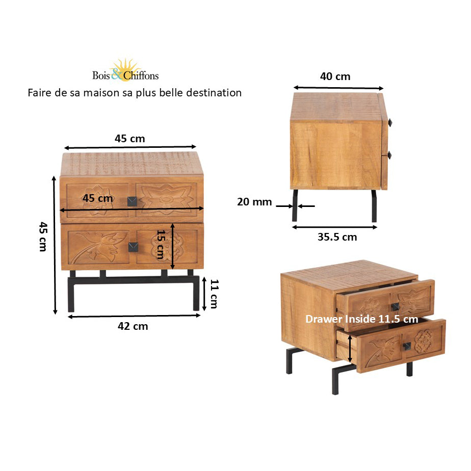 Table de chevet 2 tiroirs | Manguier Sculture II