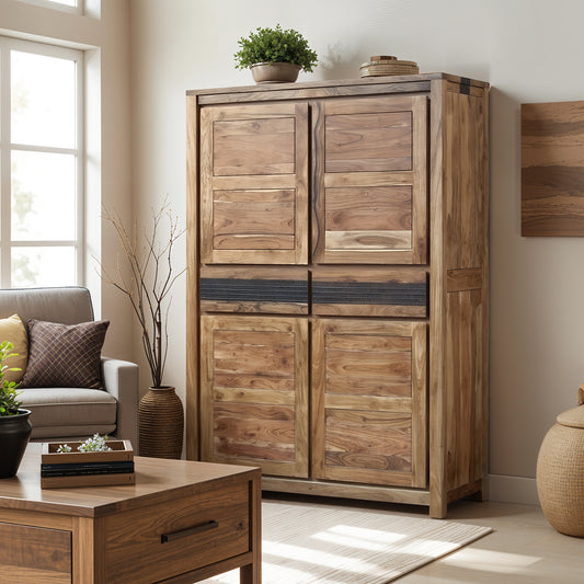 Aparador pequeno de madeira entalhada em dois tons 2P 2T | Acacia Maya
