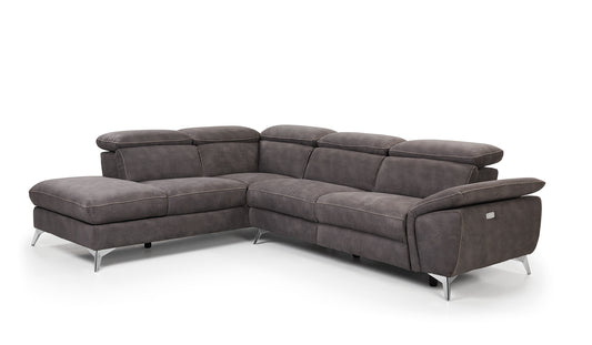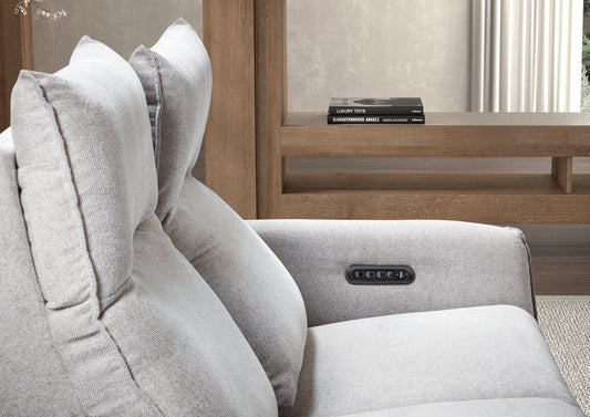 Sofá de 4 lugares em pele, 2 poltronas reclináveis elétricas | Barcelona Grey