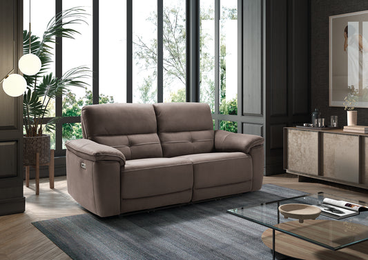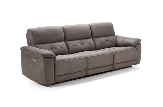 Sofá de 3 lugares em pele, 2 poltronas reclináveis elétricas | Barcelona Grey