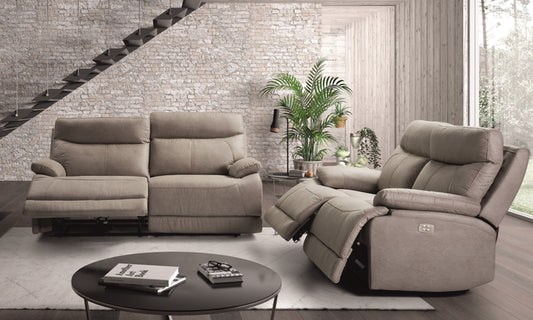 Sofá de couro de 3 lugares, 2 poltronas reclináveis elétricas | Sydney Bege