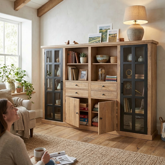Não importa se prefere um acabamento em carvalho claro para um interior luminoso ou uma madeira escura e elegante para um visual clássico, as nossas vitrinas de madeira e tecido trazem aconchego, sofisticação e elegância prática à sua casa.