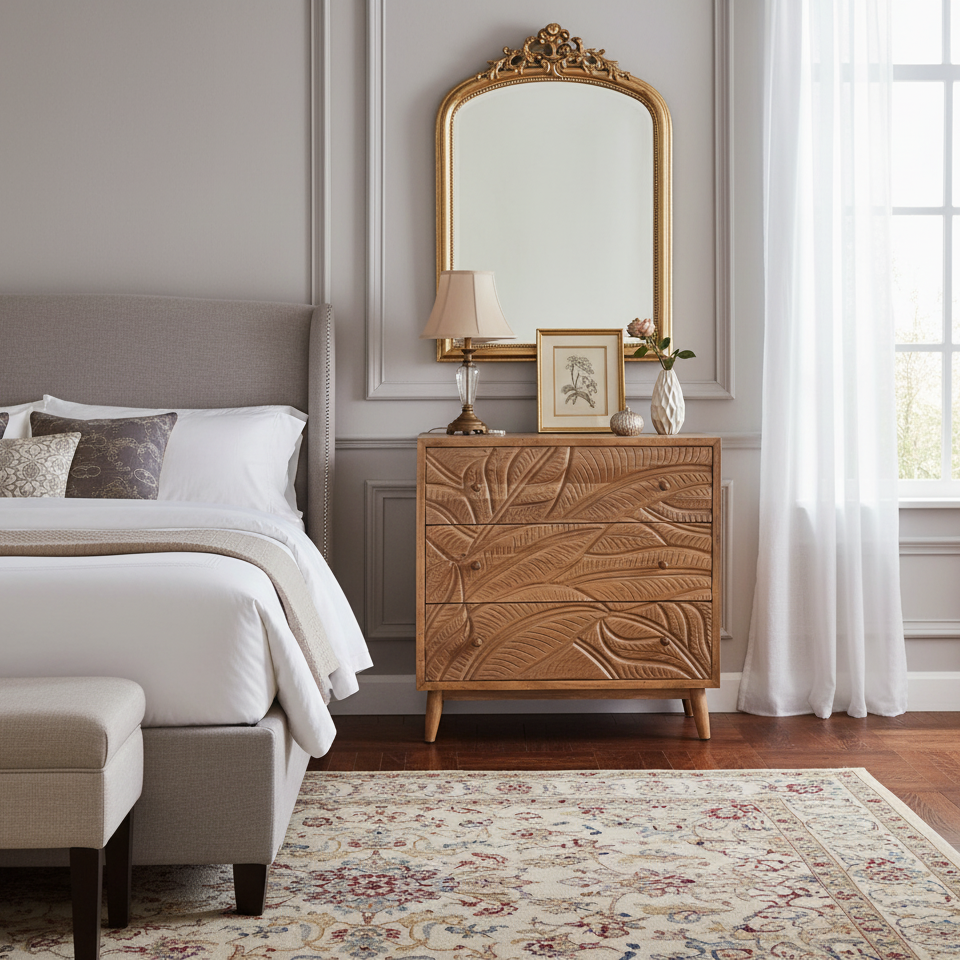 Cômoda esculpida com 3 gavetas | Floria Mango