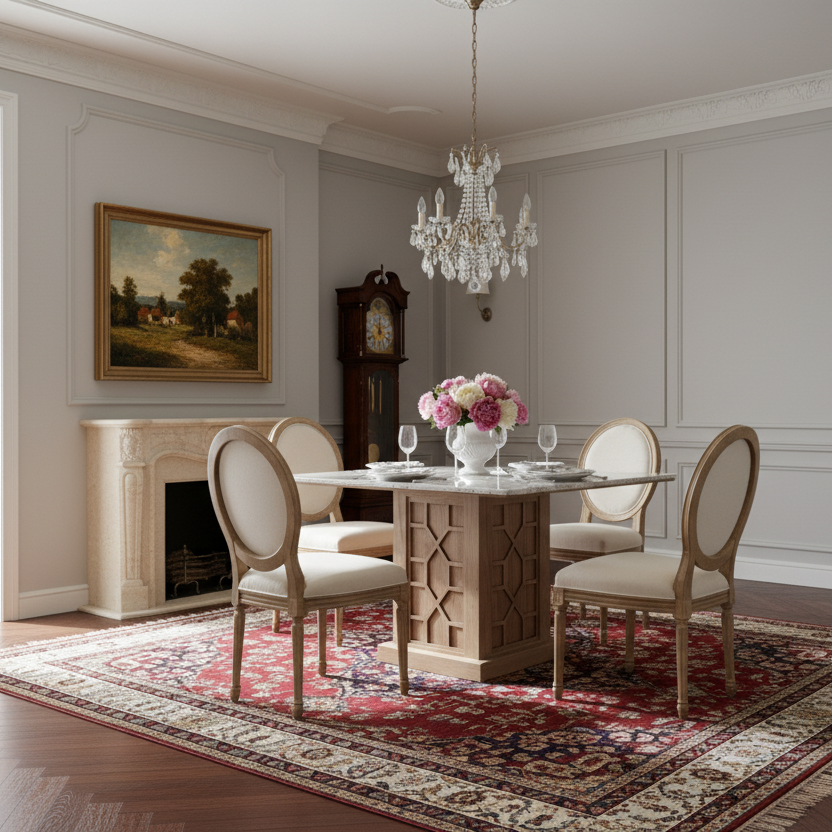 Mesa de Jantar Quadrada 130 com Tampo em Mármore | Acácia Punjab-II
