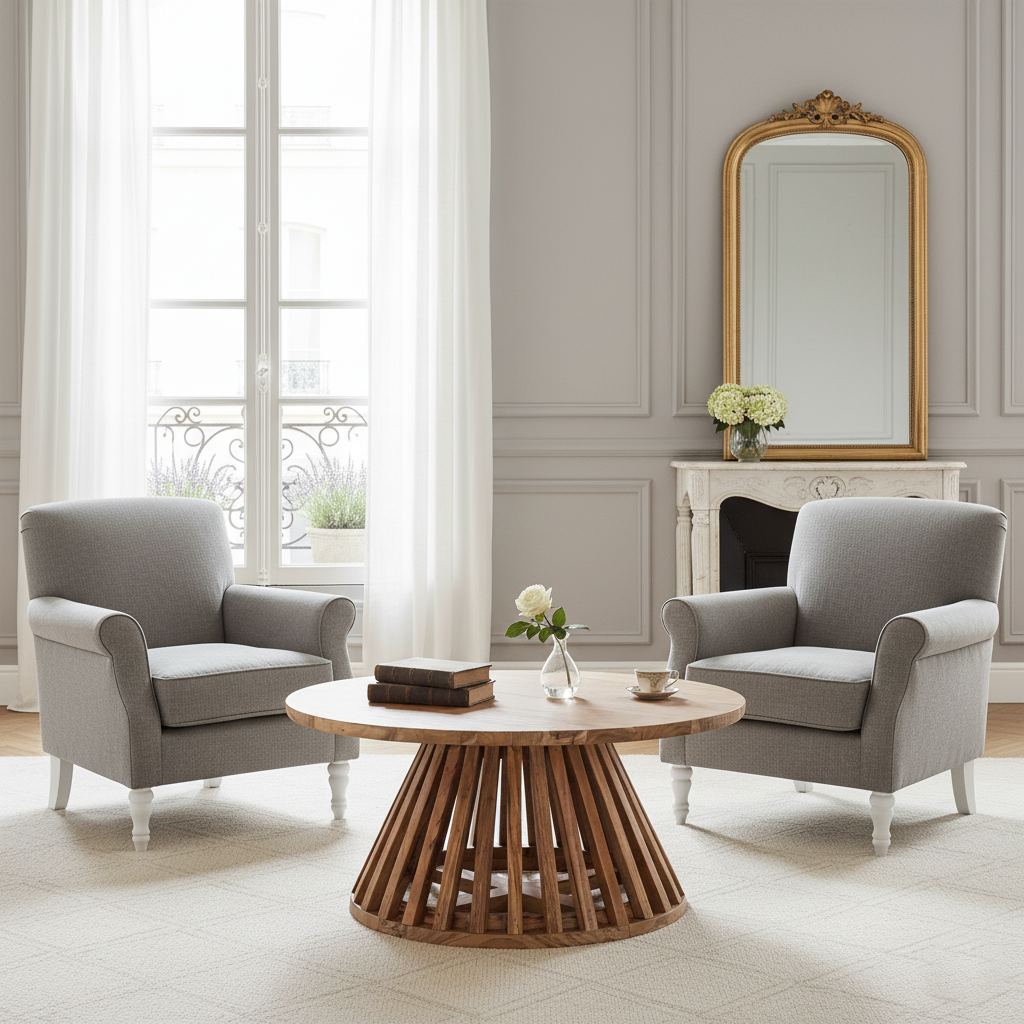 Mesa de centro redonda de madeira maciça | Acacia Kfir
